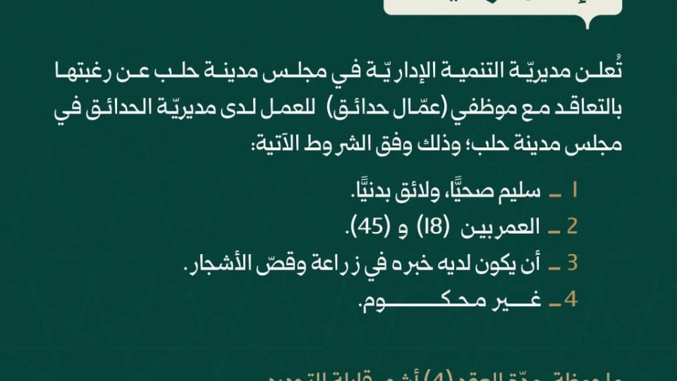 #إعلان_توظيف #مجلس_مدينة_حلب https://www.facebook.com/100076286139343/posts/pfbid05ch...