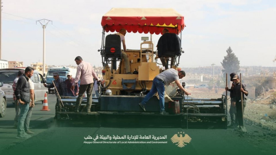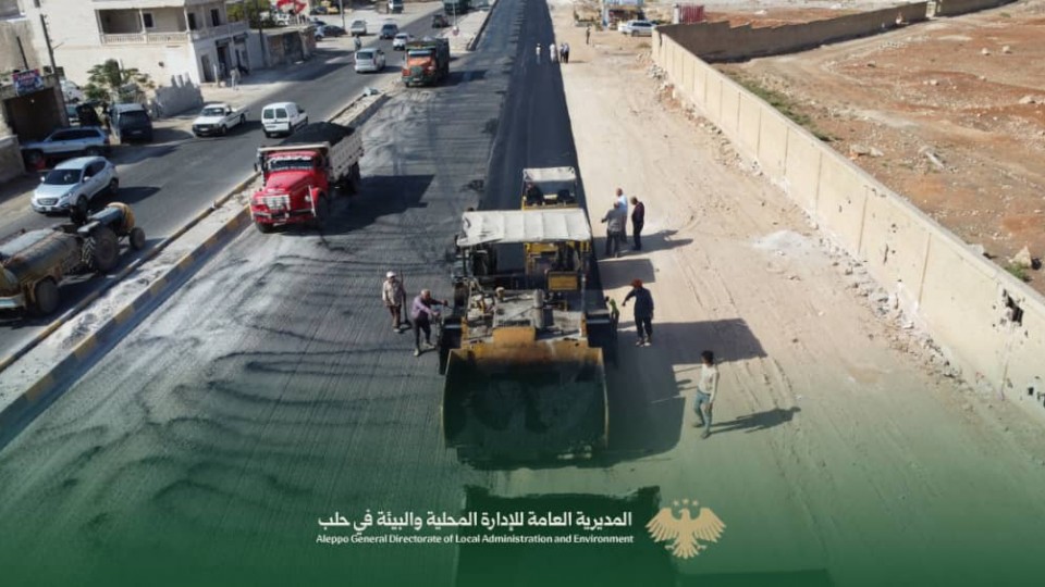 باشرت المديرية العامة للإدارة المحلية والبيئة في محافظة حلب، تنفيذ أعمال مدّ الطبقة الإسفلتية النهائية على طريق حلب – الأتارب، وذلك في إطار خطة تحسين البنية التحتية وتأهيل الطرق الحيوية في المحافظة.